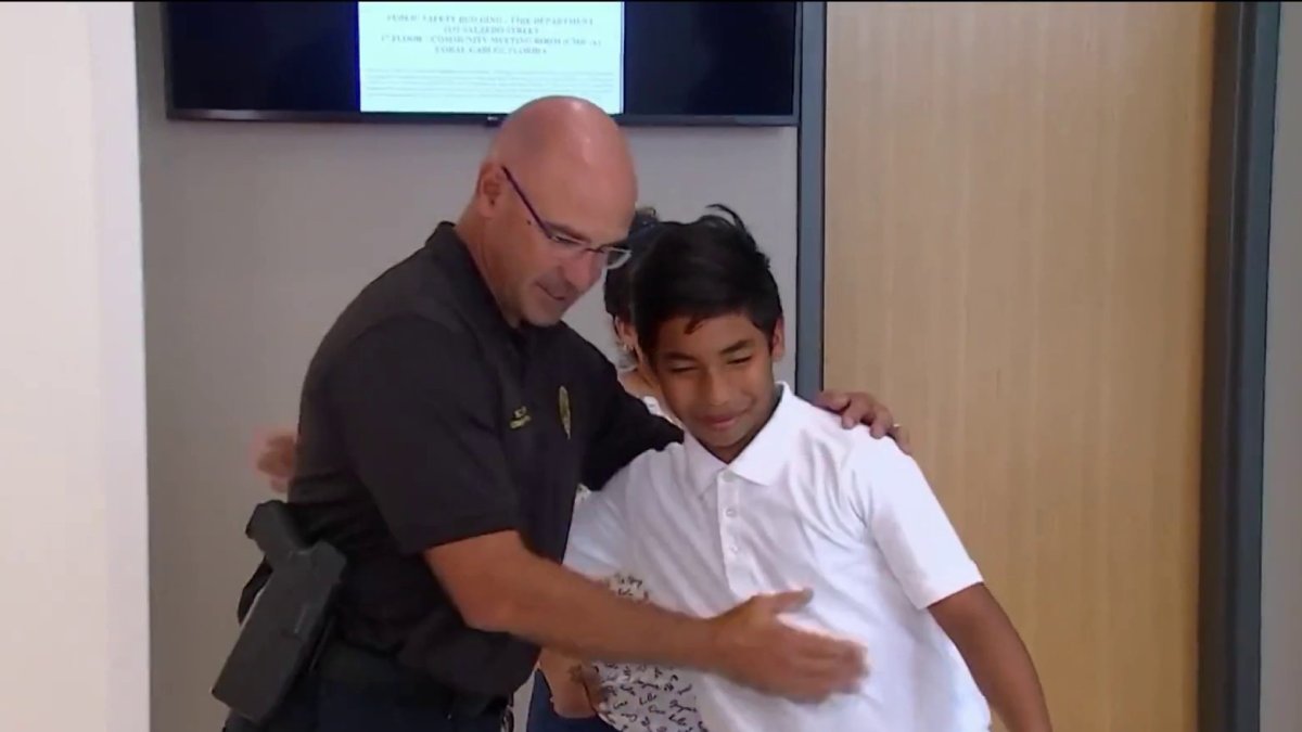 Walking to school will no longer be an option for the child. The hug to the Coral Gables police consultant who came up with the idea showed appreciation for the surprise.